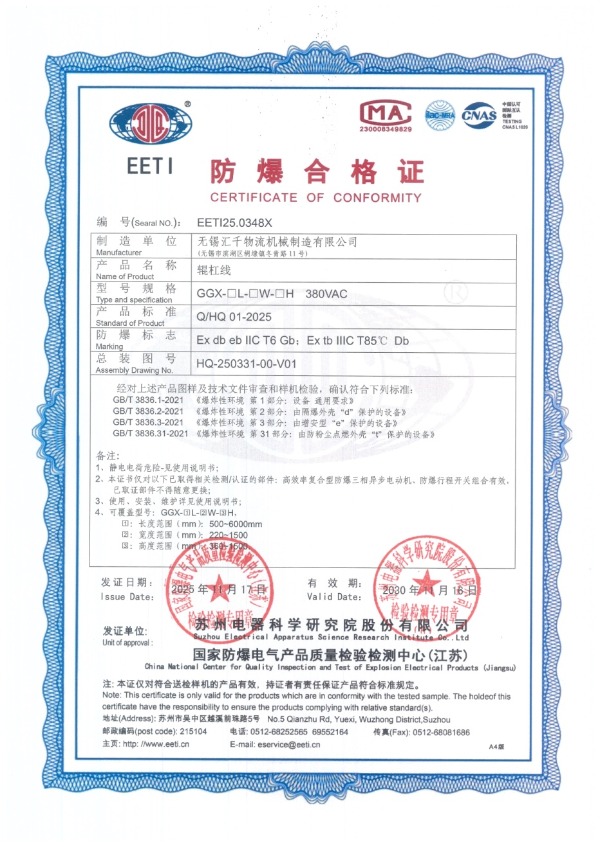 بالنسبة للشركات، تعد شهادة EETI مؤشرًا مهمًا للوصول إلى الأسواق. مع ارتفاع متطلبات السلامة الصناعية العالمية، تقوم المزيد والمزيد من الشركات في مجالات الطاقة والكيماويات والصناعات العسكرية بدمج شهادة مقاومة للانفجار في متطلبات دخول الموردين الخاصة بهم. إن حصول نظام النقل الأسطواني من Huiqian على هذه الشهادة لا يكسر الحواجز التجارية الفنية فحسب، بل يساعد العملاء أيضًا على تقليل تكاليف الامتثال، وتقصير دورات تنفيذ المشروع، ويوفر القدرة التنافسية الأساسية للتوسع في الأسواق المحلية والدولية عالية المخاطر.